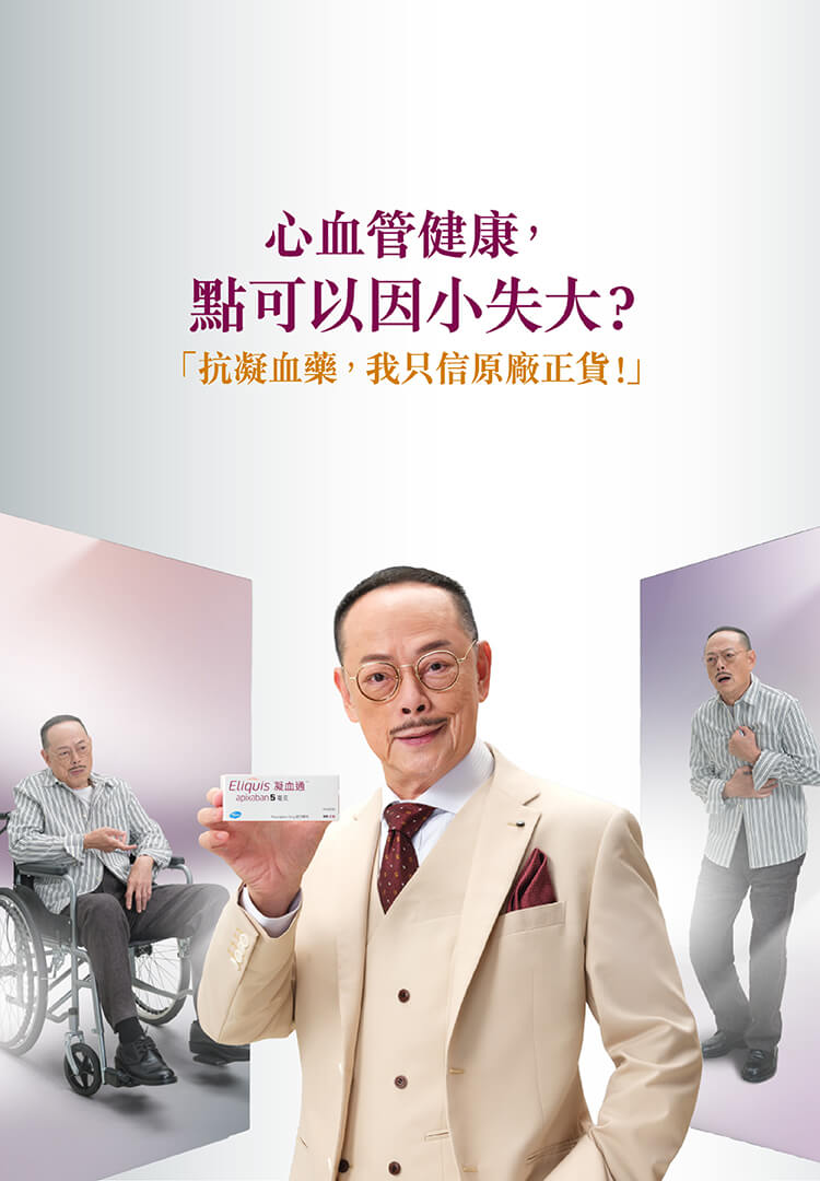 內容僅供參考, 凝血通™ (Eliquis™) 乃醫生處方藥物。藥物的成效和副作用可能因使用者的身體狀況及個別症狀而有所不同,詳情請向醫生或藥劑師查詢。